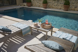 • Espace piscine avec terrasse provençale et espace de repos attenants.