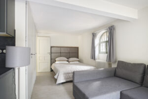 Ce studio dispose d’un lit double, d’un espace détente avec canapé, d’une salle de bain avec douche, toilettes et kitchenette.